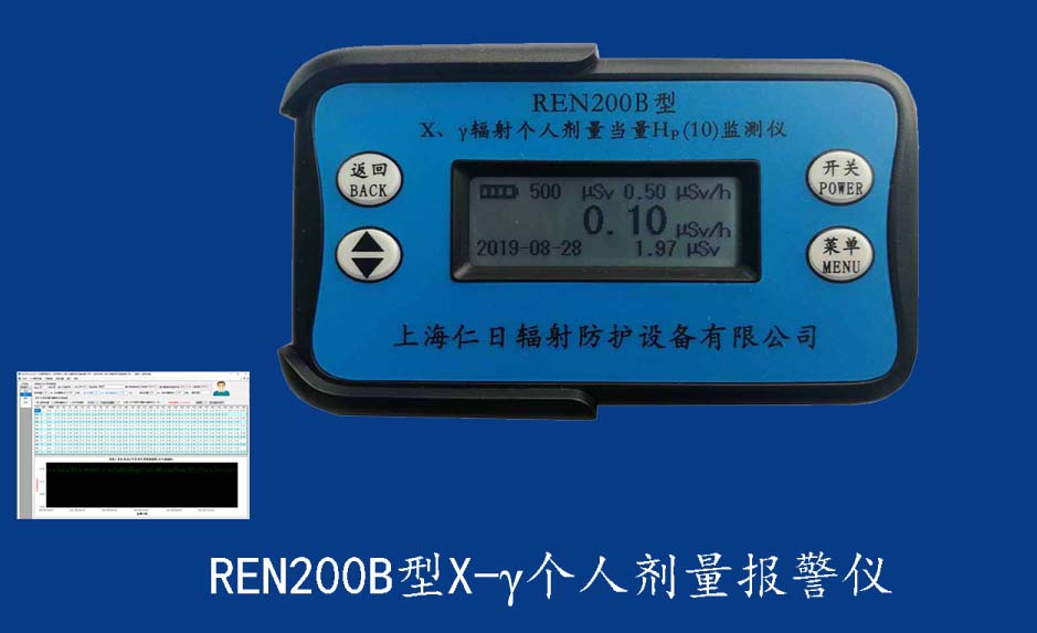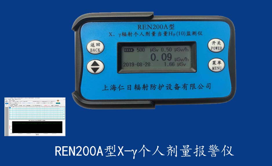 REN200型X、γ個(gè)人劑量報(bào)警儀(又叫X、γ輻射個(gè)人劑量當(dāng)量HP(10)監(jiān)測(cè)儀)內(nèi)置高靈敏度蓋格計(jì)數(shù)管為探測(cè)器,主要用來監(jiān)測(cè)各種放射性工作場(chǎng)所的X、γ以及硬β射線的輻射,具有響應(yīng)快,測(cè)量范圍寬的特點(diǎn)。能顯示工作場(chǎng)所的劑量當(dāng)量率和累積劑量,更換電池時(shí),日期及累積數(shù)據(jù)能永久保存。可選配RenRiPersonal個(gè)人劑量管理軟件,該軟件可存儲(chǔ)多個(gè)人的歷史數(shù)據(jù),能記錄日累積、月累積、年累積、輻照時(shí)長、計(jì)算平均劑量率、扣除或不扣除本底輻射,且以文字和圖譜的方式展現(xiàn)數(shù)據(jù)。廣泛應(yīng)用于核電站、加速器、鋼鐵、化工、同位素應(yīng)用、醫(yī)院、工業(yè)X、γ無損探傷、放射醫(yī)療、鈷源治療、γ輻照、放射性實(shí)驗(yàn)室、核設(shè)施周圍環(huán)境監(jiān)測(cè)